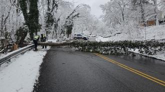Baltimore, MD – Feb. 23, 2026 – 8:55AM (BJL) A fallen tree is completely blocking Greenspring Avenue on the way to Sinai Hospital. Avoid the area.
