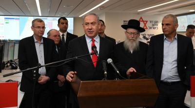 Prime Minister Benjamin Netanyahu, Health Minister Yaakov Litzman, Finance Minister Moshe Kahlon, Tourism Minister Yariv Levin, Health Ministry Director General Z, National Security Council head Meir Ben-Shabbat, today (Thursday, 27 February 2020), visited the special MDA coronavirus switchboard.