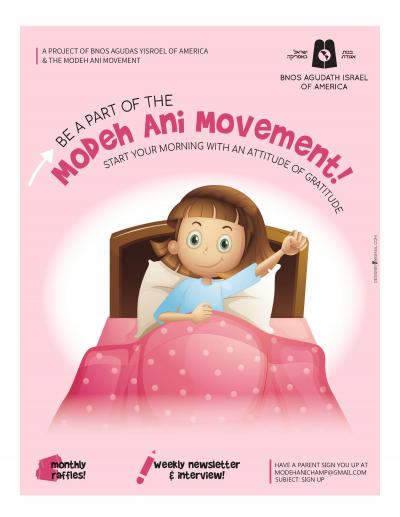 The Modeh Ani Movement was just started in Cleveland. It combats the negativity in the world by encouraging girls to start each day on a positive note. Saying Modeh Ani begins the day with an “attitude of gratitude” to Hashem for all that He does.