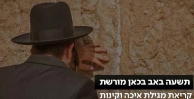 איכה ישבה בדד": קריאת מגילת איכה וקינות בשידור חי מהכותל המערבי בירושלים.