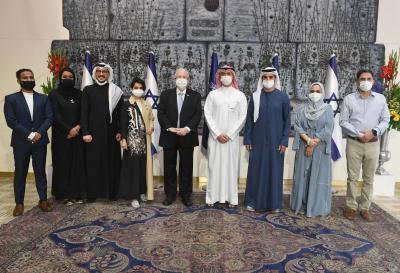 Dr. Majid a-Sarah from the University of Dubai, one of the leaders of the delegation, said, “To visit Israel for the first time as part of a delegation is an historic moment. Israel is a prime example of tolerance in the region. This is a new era of peace and stability between peoples.” Mashaal a-Shamri from Bahrain said, “As a Bahraini woman visiting Israel, it is a great honor for me to meet the president. We see Israel as a place of peace, success and co-existence.”