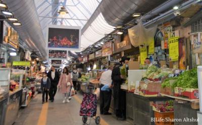 The Machane Yehudah Market was busy with pre-Pesach shoppers. Fresh garlic popular this time of year, was piled high, bought, and taken away in large over full bags. The shuk market has new signs and new ceilings with bright new lighting. New shops have opened, though some spaces are still shuttered.