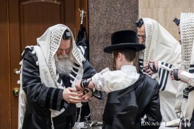 מעמד הנחת תפילין לנכד האדמו"ר מבאבוב