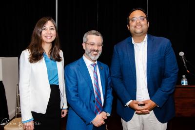 Representative Denyse Stoneback, Senator Ram Villivalam, and Rabbi Shlomo Soroka
