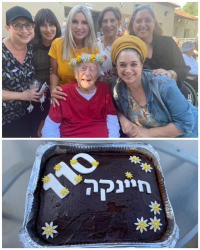 "Shalom Sivan, my aunt Heinke Gilad from Kibbutz Dafna just turned 110 years old. She arrived at the kibbutz at the age of 22 and was a founding member. She has been there ever since. She worked for years with the kibbutz children. She also worked as a cook and in the kibbutz shoe factory. Only at the age of 97 did she retire. Apparently, she is the oldest woman in Israel. So we came to celebrate with her, with the aunt who always fascinated us with stories about the pioneers, the different waves of immigration, and the beginning of modern settlement in our land. We would hear her talk in first person about everything we read in booksu. On her birthday, we noticed that she was a little tired. So when we felt that talking was tiring her out, we decided to sing for her in her honor. She was so happy to sing: 'Hinei ma tov u'ma naim,' 'Shuru habitu ur'u,' and also 'Oseh shalom bimromav.' She sang with enthusiasm, with her special smile, and spread optimism and joy all around.