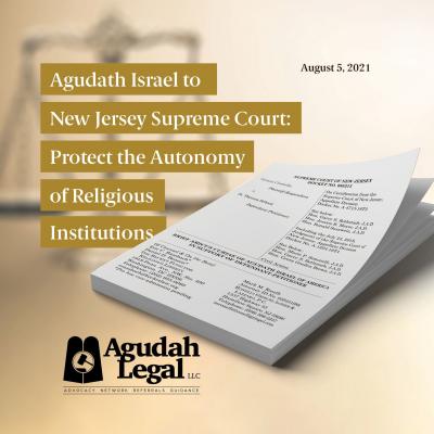 Agudath Israel of America yesterday submitted an amicus curiae (“friend of the court”) brief in New Jersey Supreme Court in a case about whether a religious institution has the constitutional right, free from judicial interference, to fire an employee who violated the institution’s religious beliefs.