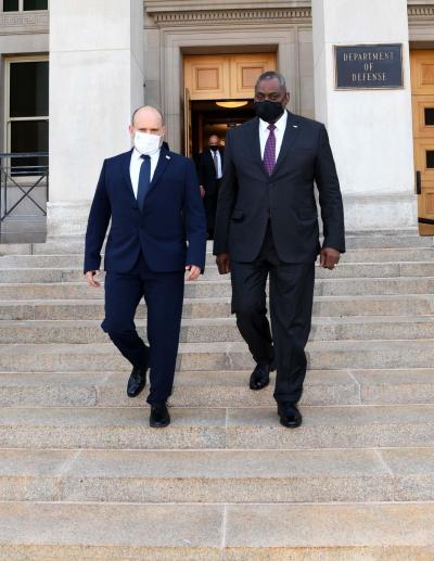 Prime Minister Naftali Bennett, today (Wednesday, 25 August 2021), at the Pentagon, met with US Secretary of Defense Lloyd Austin; this was their first meeting.