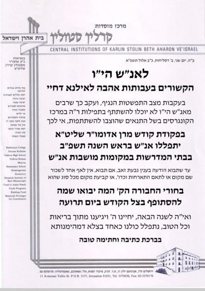 Recently, the Karlin-Stolin Chasidic movement published guidelines for davening with the Rebbe during the upcoming holiday season.