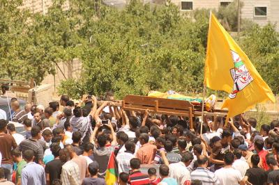 About a dozen Palestinians chanting “greeting to the martyr” gathered around the body after it was handed over to the Palestinian side at an Israeli military checkpoint near the West Bank city of Bethlehem.