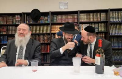 Baltimore, MD - Mar. 11, 2022 - Before leading Kabalas Shabbos world famous singer, Reb Shlomo Simcha, enjoys Toameha at Suburban Orthodox with food, drink, divrei Torah and of course zemiros accompanied by musicians Yehuda Mond and Eli Frenkel to help bring in this very special Shabbos Parshas Zachor.