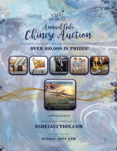 Well, the annual Nshei Mercaz Chinese Auction is coming soon; be sure to purchase your tickets today at nsheiauction.com!