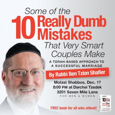 Baltimore, MD – Dec. 10, 2022 – The entire Baltimore community is invited Motzaei Shabbos, Dec. 17, to hear Rabbi Ben Tzion Shafier talk about a Torah-based approach to a successful marriage.  Free book for all who attend