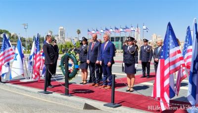 Israeli Knesset Speaker Amir Ohana invited and greeted McCarthy, escorting him on a red carpet into the Knesset after viewing an honor guard and placing a wreath by the memorial flame outside the Knesset.The national anthems of both Israel and the United States were played as the US flag was raised and many more flags flew in the afternoon breeze.