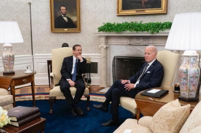 President of Israel, Isaac Herzog, met today (Tuesday), with the President of the United States, Joseph R. Biden, at the White House on the first day of his visit to Washington DC. Ahead of their meeting, the two presidents delivered statements to the media in the Oval Office.