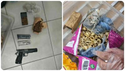 Israel Ministry of Defense security personnel successfully apprehended a suspicious Palestinian vehicle at the Hotze Shomron Crossing this afternoon. Upon inspection of the vehicle, a firearm and several ammunition cartridges were discovered concealed within snack bags. The two Palestinian passengers and the seized weapons were transferred for further investigation by security officials.