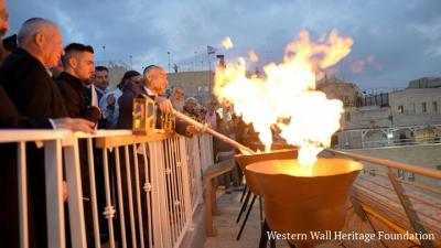 The lighting of the Chanukah candle took place in the presence of Rabbi Shmuel Rabinowitz, the Rabbi of the Western Wall and the Holy Sites, Rabbi David Lau, the Chief Rabbi of Israel, Minister of Agriculture and Rural Development Avi Dichter, Minister for the Advancement of the statue of Women Mai Golan, Deputy Minister of Agriculture and Rural Development MK Moshe Abutbul, MK Odad Tal, Israel's Fire and Rescue Commissioner Eyal Kaspi, Chief Rabbi of Fire and Rescue Rav Chaim Perl, Deputy Director and Head of the Families and Heritage Department- Defense Ministry, Aryeh Mualem, Director of the Western Wall Heritage Foundation Mordechai (Suli) Eliav, firefighters and rescue personnel, commanders, representatives of farmers, families, and a wide audience.
