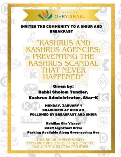 • I’m coming from NY to Baltimore for a Star-K kashrus program wh...
