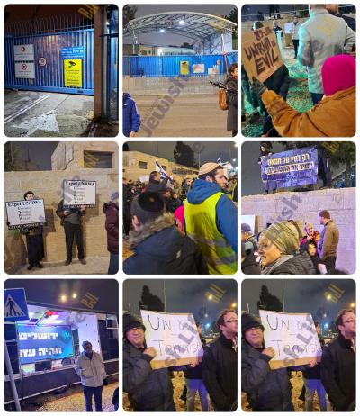 Maalot Dafna, Israel - Feb. 5, 2024  - Residents of Maalot Dafna, located across from the vast UNRWA compound, gathered for a demonstration on this chilly February evening. The imposing compound, enclosed by fences and barbed wire, serves as the headquarters for UNWRA employees. Amid the Israel-Hamas war in Gaza, further questions have been raised about the agency’s ties with Hamas. On January 26, the U.S. announced it would temporarily pause funding to UNRWA after Israel revealed that at least a dozen employees were allegedly involved in the October 7 Hamas terror attack on Israel. With determination and a unified spirit, the demonstrators hoped to shed light on issues that have long been shrouded in secrecy.