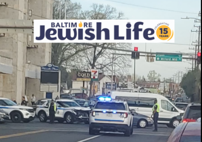 Baltimore, MD – Apr. 14, 2026 – 8:07AM (BJL) – An accident involving a Police car and a van at the intersection of Slade/Milford & Reisterstown Road near the old Dougie’s has the area totally blocked off.