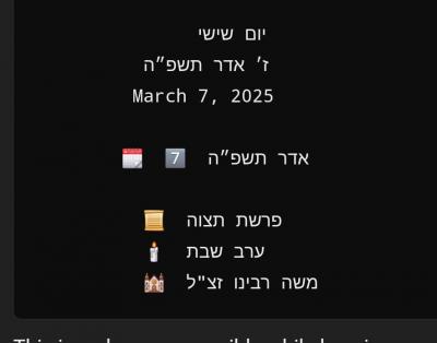 Baltimore, MD – March 4, 2025 -  This Friday, Zayin Adar, join a special Mincha minyan at the Agudah Park Heights (Balcony). The minyan will include Krias HaTorah and will take place at 5:00PM. Fasting is optional. For further information, please contact Yitzchok Steinharter at 410-358-0316.