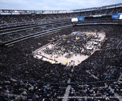 If you closed your eyes and let the waves of kedushah wash over you, you could imagine that you were standing at Har Sinai at the exact moment when Klal Yisroel received the most precious gift in the world directly from Hashem. Far from its beginnings as a sporting venue, MetLife Stadium was transformed into a mikdash me’at, with men, women and children of all ages, representing every segment of the Jewish community, joining together to celebrate the completion of the 13th cycle of Daf Yomi.