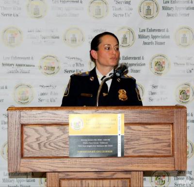 Baltimore, MD - Jan. 8, 2020 - The Jewish Uniformed Service Association of Maryland (JUSA), founded by Chabad Rabbi Chesky Tenenbaum, provides outreach to men and women in uniform, offering programming and support to Law Enforcement and Military personnel. On Monday night, JUSA held its second Law Enforcement and Military Appreciation Awards Dinner at the historic Pimlico Race Course-Clubhouse. The event, attended by law enforcement and military members as well as supporters of the organization, celebrated JUSA's motto "Serving those who serve us" and honored specific individuals who have done great service for the local and national community. The ceremony opened with the presentation of colors by the Maryland State Police Honor Guard, followed by The Pledge of Allegiance by Howard Libit, Director of Baltimore Jewish Council, and the invocation, given by Rabbi Elchonon Lisbon of Chabad of Park Heights.