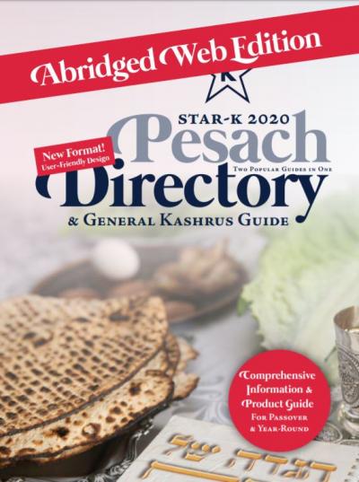 Baltimore, MD - Mar. 29, 2020 - Abridged Web Edition: Star-K 2020 Pesach Directory & General Kashrus Guide including Pesach Medicines & Cosmetics.