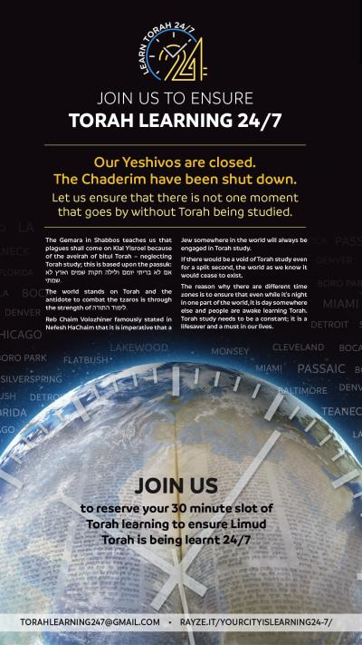 Join this global mission to ensure that limud haTorah is taking place in every city 24/7.