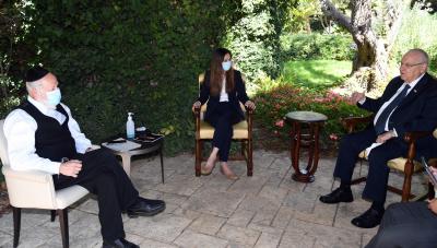 Jerusalem, October 8, 2020 – President of Israel Reuven (Rubi) Rivlin today (Thursday) announced that employees at the President’s Residence will take part in the ZAKA “Don’t Leave them Behind” initiative, by making regular phone calls to check on the health and wellbeing of elderly people and those living alone. This, during a meeting with President Rivlin, Minister for Social Equality and Pensioners MK Meirav Cohen, ZAKA Search and Rescue Chairman Yehuda Meshi-Zahav and the Director-General of the President’s Residence Harel Tubi.