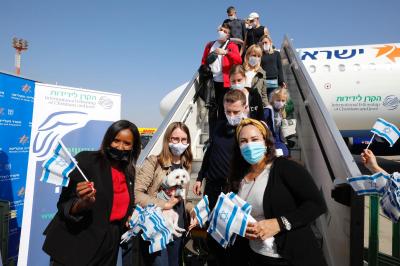 Symbolically, the 3.3 millionth oleh immigrated to Israel to mark "Aliyah Week" alongside 240 new immigrants from Ukraine. They landed in Israel today, on a charter flight consisting of three Israir flights organized by IFCJ. This marks a daily record since the corona crisis began last March. These olim join more than 11,000 others who immigrated to Israel from 85 countries around the world since the outbreak of the corona crisis.