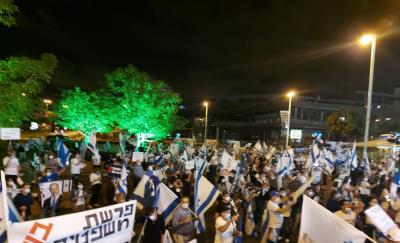 Hundreds of demonstrators gathered on Tuesday night to protest against Attorney General Avichai Mandelblit near his home in Petach Tikvah.