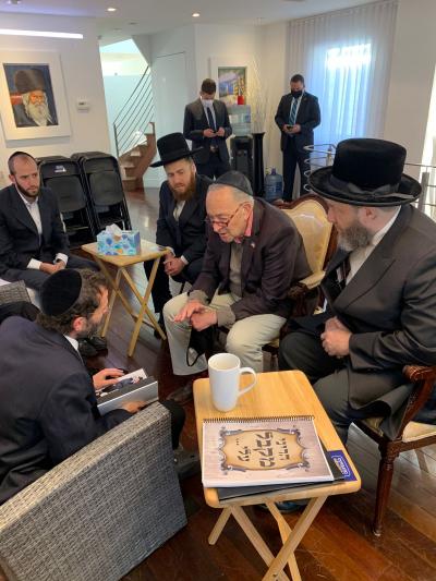 Early this morning, before getting up from shiva, Senator Chuck Schumer participated in a shiva visit to the home of Mr. & Mrs. Dovid and Tova Knoblowitz whose son Pinchos Menachem Z'L tragically lost his life in Meron last week.