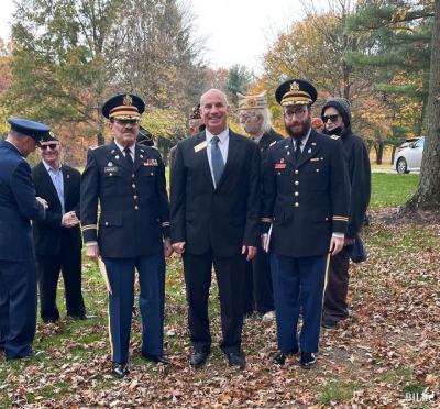 Baltimore, MD - Nov. 15, 2021 - The Jewish War Veterans of Maryland and Jewish Uniformed Service Association of Maryland (JUSA) hosted a Veterans Day Kaddish Service at the Jewish Section in Garrison Forest Veterans Cemetery, one of the only such ceremonies in the Nation. Over 40 veterans and community members attended the meaningful service led by Rabbi Chesky Tenenbaum, director of Jewish Uniformed Service Association of Maryland-Chabad and Chaplain of the Jewish War Veterans of Maryland. The service started with commander of the Jewish War Veterans of Maryland COL Erwin Burtnick, USA (Ret), welcoming everyone to the service and speaking about the uniquness of the Jewish section at the Veterans Cemetry. It was followed by the Kaddish in memory of our fallen Veterans and heroes.
