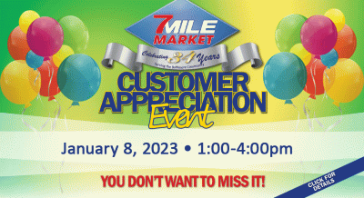 Baltimore, MD - Jan. 2, 2023 - Seven Mile Market invites family and friends to join us again this year to celebrate 34 wonderful years of serving the greater Baltimore community!  Our Customer Appreciation Event will be this Sunday,  January 8 from 1:00-4:00 p.m. (times are approximate). The event promises to be bigger and better than ever!