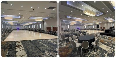Our banquet space can host 800 guests in over 10k square feet with a variety of executive meeting spaces that are great for smaller Shabbat dinners as well.