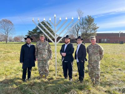 Aberdeen Proving Ground - Dec. 13, 2023 - For the 6th year, thanks to the efforts of Rabbi Chesky Tenenbaum, director of the Jewish Uniformed Service Association of Maryland-Chabad, a Chanukah Party and Menorah Lightning took place at Aberdeen Proving Ground.