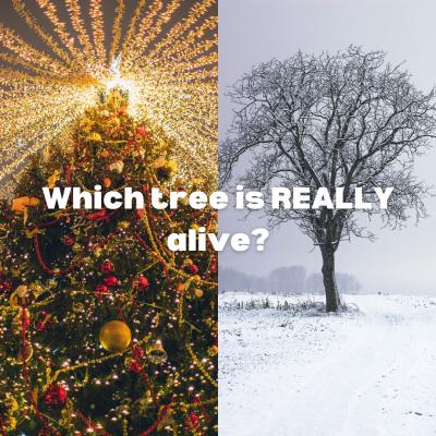 It's so interesting, if you think about it. Their trees that they purchase, schlep, and set up in their homes look beautiful, glamorous, and dazzling. They are decked out with shiny orbs, exciting lights, and various other holiday ornaments. However, guess what? These trees - the fact that they are detached from the ground - are factually, technically, and intrinsically dead! Yes, these very trees that look alive and sparkly are dead on the inside. The spectacle is nice, but it's a façade; the tree is not alive.