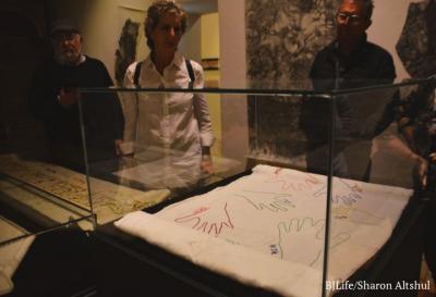 Included in the photo essay are scenes from Behind the Mask, by curators Vera Pilpoul and Ermanno Tedeschi, Seeds of Memory with curator Elizabeta Zaidner, a family textile by artist Heddy Abramowitz, and views inside the ornate and impressive Italian Synagogue.