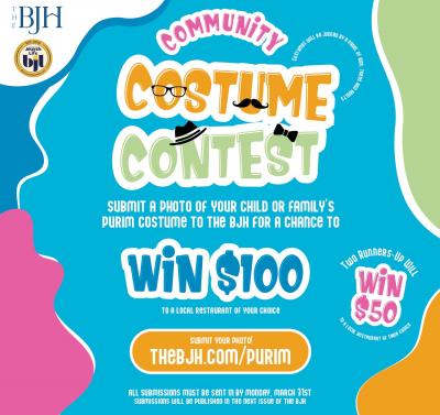 Submit a photo of your child or family's Purim costume to the BJH for a chance to win.  thebjh.com/purim