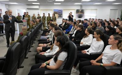 At the start of his visit, the Prime Minister was briefed on enlistment data in the shadow of the war and was impressed by the recruits' great motivation to serve in the IDF in general, and in combat positions in particular. He then spoke with the new recruits and answered their questions.