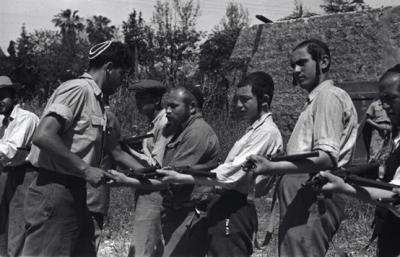 Yeshiva Students Undergoing Shooting Range Training in Jerusalem, during the War of Independence, 1948. Photo by Fred Chesnik, KKL-JNF Photo Archive