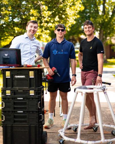 A small fleet of our most talented high school and young-adult volunteers, got to work. With only 7 days to create something revolutionary, the imadi boys stayed up night after night, sketching, testing, prototyping, 3D-printing. They even enlisted the support of community friend and local tailor Mr. Kim at Park Tailoring on Clarks Lane to help create a harness they designed. Within days, they created a custom-built contraption we call it “GlideZilla” —a sleek, adaptive mobility design that would let a resilient bride stand tall and dance with pride.