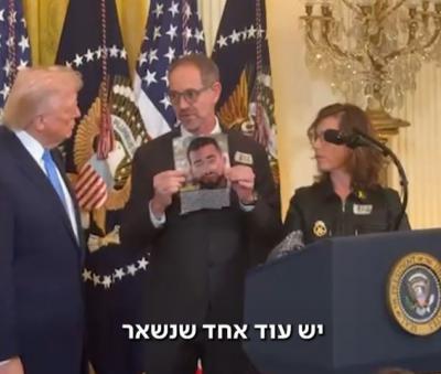 Ronen thanked the President for everything he has done for them, the Jewish people, and Israel, but also corrected his crucial mistake: "Your amazing leadership brought us to the point where we got our kid back, but there is still one left: Ran Gvili. He's still there."... Read More: Arutz-7