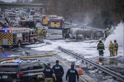 Baltimore, MD - Jan. 27, 2026 - Thousands of gallons of fuel spilled in a tanker rollover crash in Baltimore County.