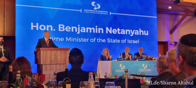 Jerusalem, Israel  - Feb. 15, 2026 - Led by Conference of Presidents Chair Betsy Berns Korn and CEO William C. Daroff, the delegation, representing the Conference’s 50-member organization and guests, rose to welcome Prime Minister Benjamin Netanyahu, who gave the keynote address at the Opening gala of the Conference of Presidents of Major American Jewish Organizations’ 51st Leadership Mission to Israel tonight in Jerusalem.