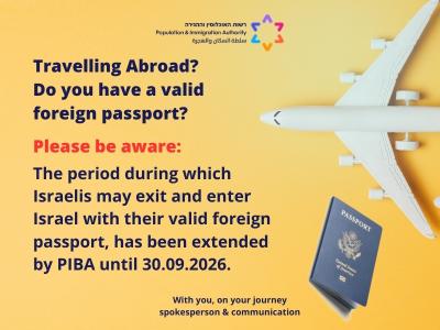 The Interior Ministry has now announced that this accommodation will remain in place through September 30, 2026. Dual citizens will therefore continue to be permitted to enter and depart Israel using a valid foreign passport during this period.... Read More: Chaim V'Chessed