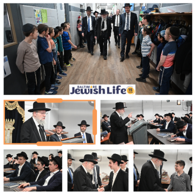 Baltimore, MD – Mar. 26, 2026 – (BJL) HaRav Moshe Heinemann, shlita, spoke to the talmidim at Yeshivas Toras Simcha today.  Rav Heinemann stressed how fortunate our talmidim are to be privileged to learn in a yeshiva with menuchas hadaas and wonderful rebeeim.  The Rav encouraged the talmidim to help with Pesach preparations at home.  The Rav greeted each middle school talmid and gave a bracha to each talmid.