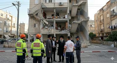 At 12:30 Shabbos afternoon the siren went off indicating an incoming missile. Two minutes later they heard the Iron Dome successfully hitting the missile. However, this was a cluster bomb which split into multiple missiles when struck by an Iron Dome. One minute later a missile flew into the fourth floor directly above their apartment and exploded. The missile completely destroyed two apartments including their exterior walls. The family living in one of the destroyed apartments was in Yerushalayim for Shabbos. And the family living in the other apartment happened to be in a room that is on the fifth floor. (They have a staircase inside their apartment.) Naturally, the entire building shook. Yaakov anticipated the crumbling of the building. He and his wife took their infant and exited out through the right stairwell. In fact, all the residents exited through that stairwell. They could have chosen to exit through the left stairwell but nevertheless, nobody chose that stairwell. As it turned out, there were no casualties and the left stairwell suffered much damage from crumbling building material.