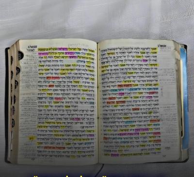 I recently had the opportunity to interview International Bible Quiz champion Hodaya Cohen, together with her mother, Hila. I also got a glimpse of Hodaya’s personal Tanach, which she used to prepare for the competition. Each topic is highlighted in a different color, and the pages are marked with countless notes and summaries, reflecting years of love and consistency.
