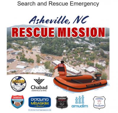Baltimore, MD - Sept. 30, 2024  - Hurricane Helene has severely impacted Asheville, NC, including the local Jewish community. Dozens of Jewish families, including frum members, are missing or trapped. A Lakewood man recounted how his uncle traversed 15 miles through mud and swam across a river to safety, while his wife remains stranded with no power or communication.